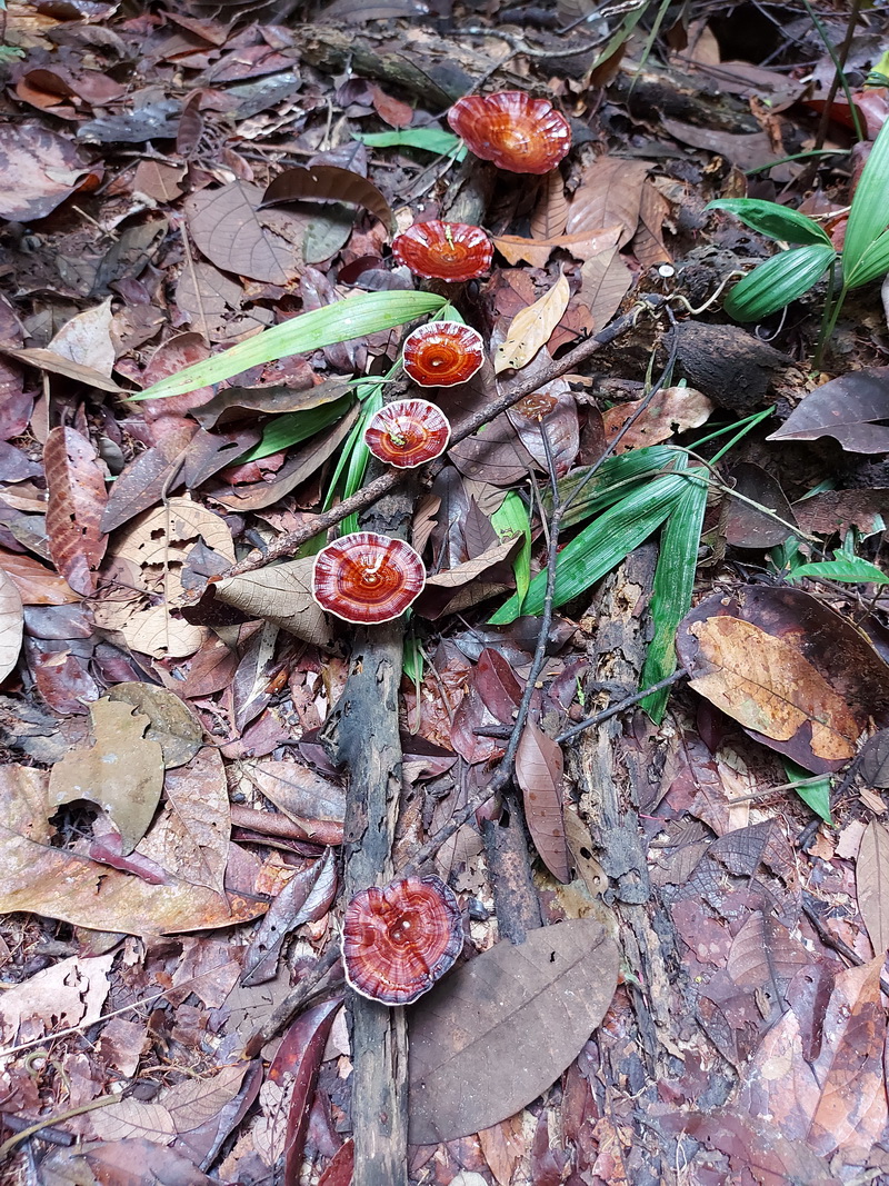 Barisan kulat liar tersusun indah di lantai hutan
